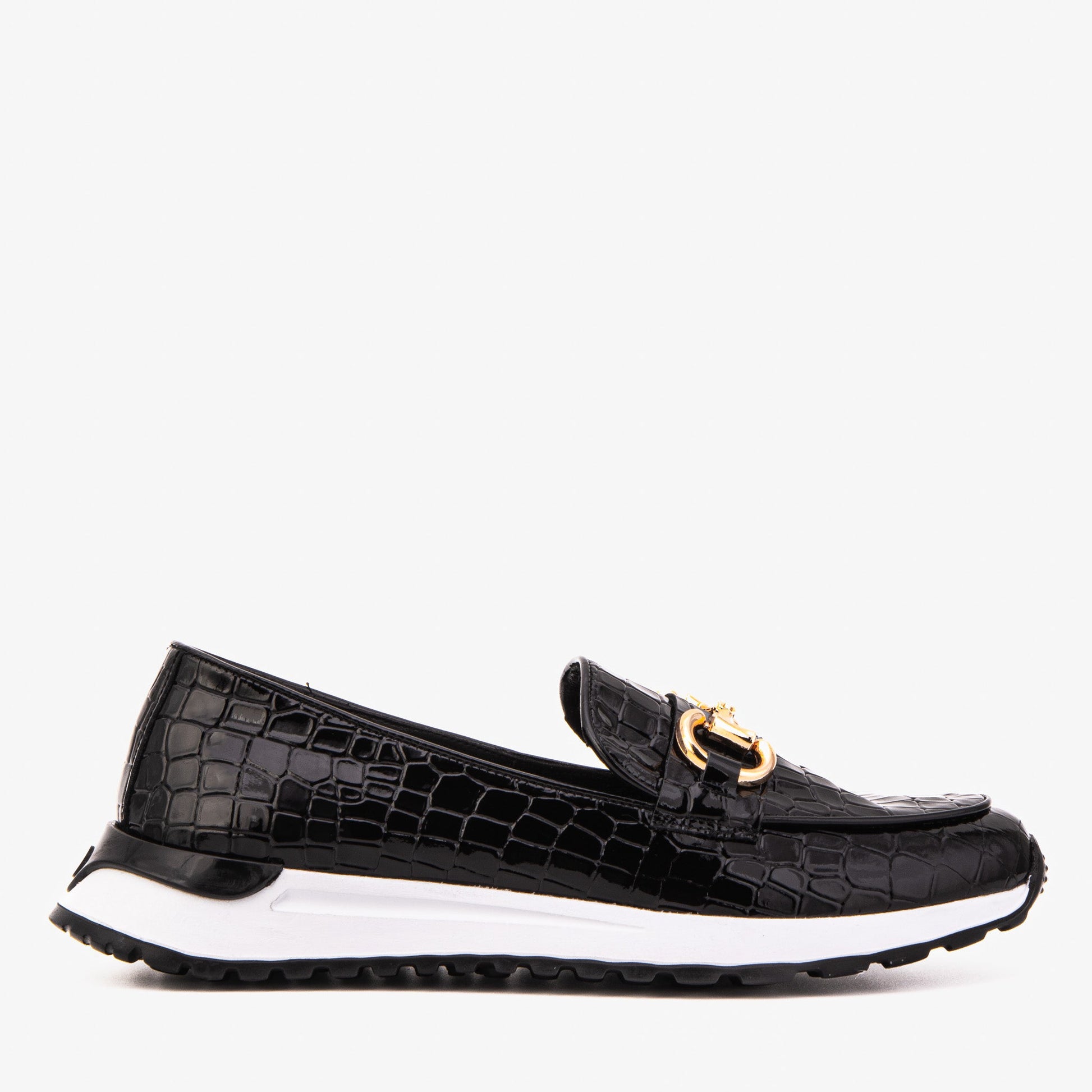 Effortlessly combining elegance and comfort, The Milan Black Croc-Embossed Patent Leather Women Sneaker is the perfect choice for those who appreciate luxury with a sporty edge. Designed for all-day wear, this sneaker offers a modern twist on classic loafer aesthetics while ensuring superior comfort and style.